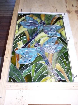 Someone once asked me what is my favorite part of the process. I had a hard time answering with just one thing. I love the design process, the choosing of art glass, the cutting and scoring of glass, the construction of a piece to finally cleaning and polishing the piece and then hanging it up in a window for the first time and seeing the light come through it. I do custom pieces for clients, but I also design and create projects in which I want to express something personally.