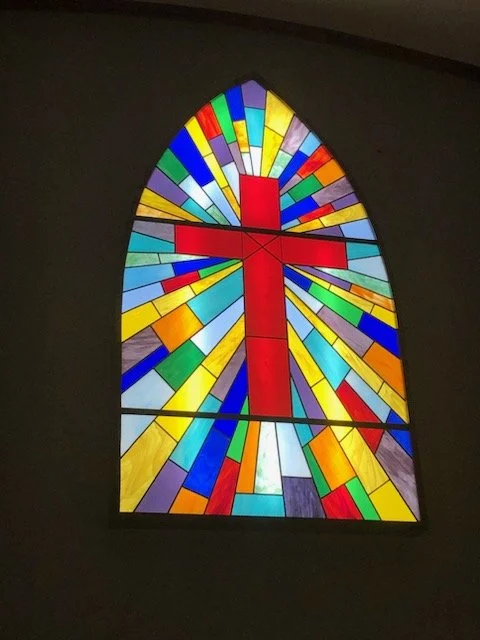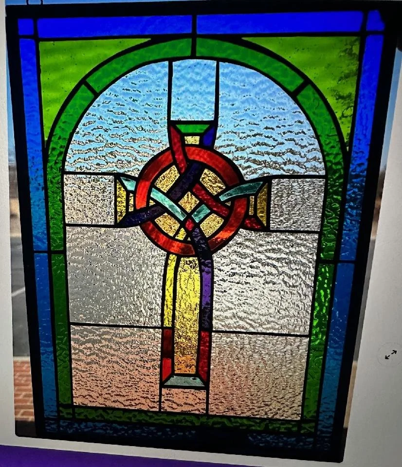 We were asked to use antique stained glass windows from Zion Lutheran Church, Johnson, NE to make small memorial sun catchers for church members because the church was closing.